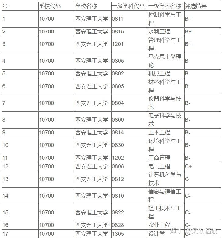 根据教育部最新发布的全国第四轮学科评估结果可知,西安理工大学有控制科学与工程、水利工程、管理科学与工程3个一级学科评估为B+,以下是具体评估结果